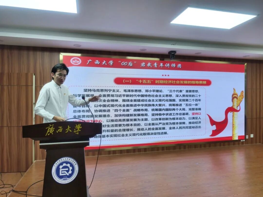 604举行青春思享荟第352期,解读国家蓝图,激发使命担当。邀请到广西大学“00后”君武青年讲师团万李普照同学担任主讲人,澳门永利皇宫