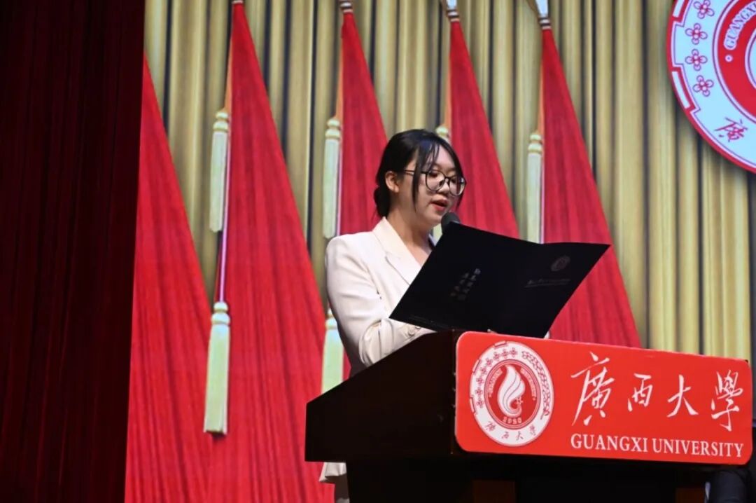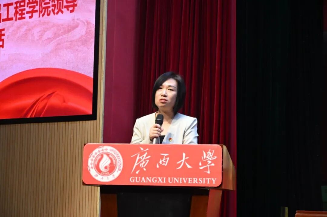 党委发表讲话。她充分肯定了过去一年学生会的工作成效。她指出,学生会在思想引领、学风建设、专业实践、校园文化等方面亮点纷呈,展现出轻工食品学子的责任担当与青春活力。她对全体学生代表及新一届学生会提出三点希望:一是铸魂立心,做轻工食品事业的坚定追光者,将理想信念融入专业学习,厚植“强轻工、兴食品”的使命情怀;二是笃学强技,做学科发展的积极建设者,立足食品研发、轻工技术等专业特色,以实践锤炼本领,以创新驱动成长;三是服务担当,做同学成长的贴心同行者,优化服务模式,聚焦同学学业困惑、生活需求,打造有温度、有实效的学生组织。