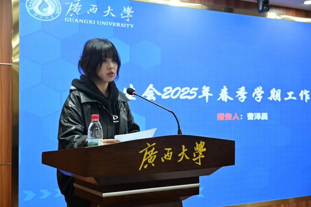 会上,曹泽晨代表研究生会主席团作上半年工作总结报告,并对下半年工作进行系统部署。报告指出,上半年研会成功策划并举办了学术讲座、文化交流、体育竞赛等一系列丰富多彩的活动,不仅丰富了同学们的课余生活,还有效提升了组织的凝聚力与影响力。在内部建设方面,研会通过常态化开展工作例会、技能培训和复盘研讨,团队协作效率显著提升,成员的综合素质也得到全面锻炼。针对工作中存在的不足,如部分活动的宣传覆盖面有待拓宽、内部工作流程效率有待优化等问题,她表示,将在下半年工作中针对性地制定改进措施,推动研会工作提质增效。