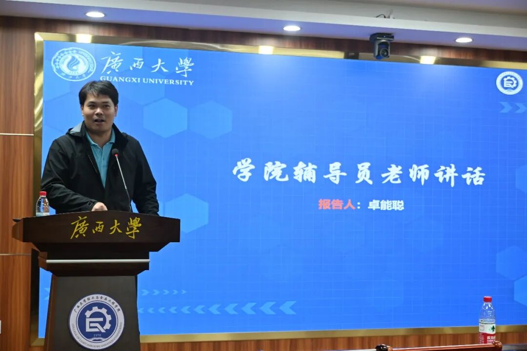 随后,卓能聪老师围绕研会思想建设工作提出明确要求。他强调,研究生会作为服务同学的重要组织,思想统一是凝聚力量、高效履职的根本前提,希望研会骨干成员深刻认识思想建设的重要性,通过建立制度化、常态化的理论学习机制和工作交流平台,进一步达成“团结干事、凝聚力量、服务同学”的思想共识。