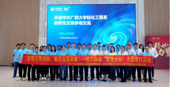 党委副书记、院长覃程荣同志率领轻化工程系教师党支部全体党员赴中国移动广西公司开展“党建引领创新、数字点亮未来”主题党日活动