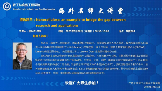 教授,加拿大工程院院士倪永浩受邀开展了以“Nanocellulose : an example to bridge the gap between research and applications ”为题的学术报告,报告由覃程荣院长主持。讲座吸引了澳门永利皇宫