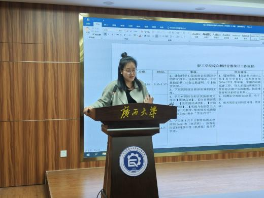 复核三阶段。她指出,综测审核是落实“五育并举”理念的关键,要求班委严格对标、严谨核验、严守时限,确保每项加分有据可查、有章可循。曹老师还系统解读了本学期综测文件,文件中明确了证明材料规范化,分数核算精准化,答疑机制定向化等措施。
