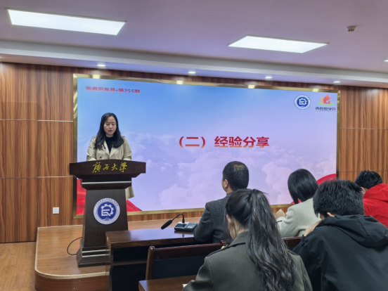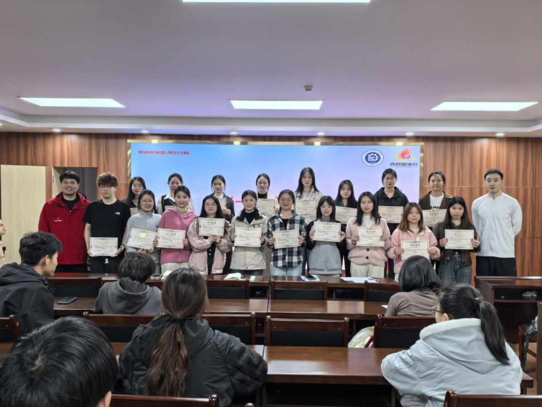 会议伊始,徐羽、卓能聪、刘宇三位老师为获奖学生颁发荣誉证书,并一同合影留念。随后,轻工242班张文静、李礼迎,24级研究生3班陈楚璇、张婉婷分别结合自身实践经历,分享他们在社会实践中的宝贵经验和深刻感悟。