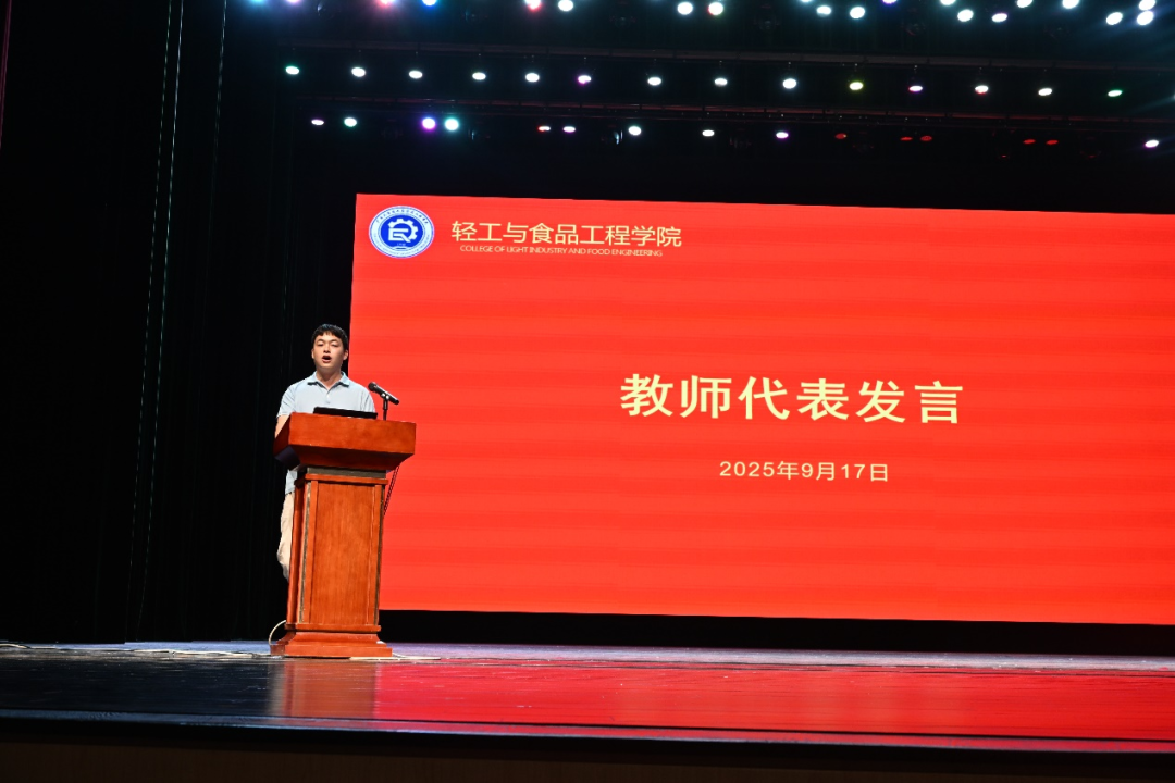 六年来的求学经历,从初入校园的懵懂到扎根科研的坚持,逐步领悟到“轻工食品”并非“吃喝”之学,而是关乎民生安全、绿色发展和产业进步的“大文章”。他向新生分享了敢于尝试、夯实基础、融入集体的三点建议,鼓励他们在实验与实践中探索方向,在团队与奋斗中收获成长。他表示,作为轻工人,应将专业能力融入国家所需,以青春之力挺膺时代担当。