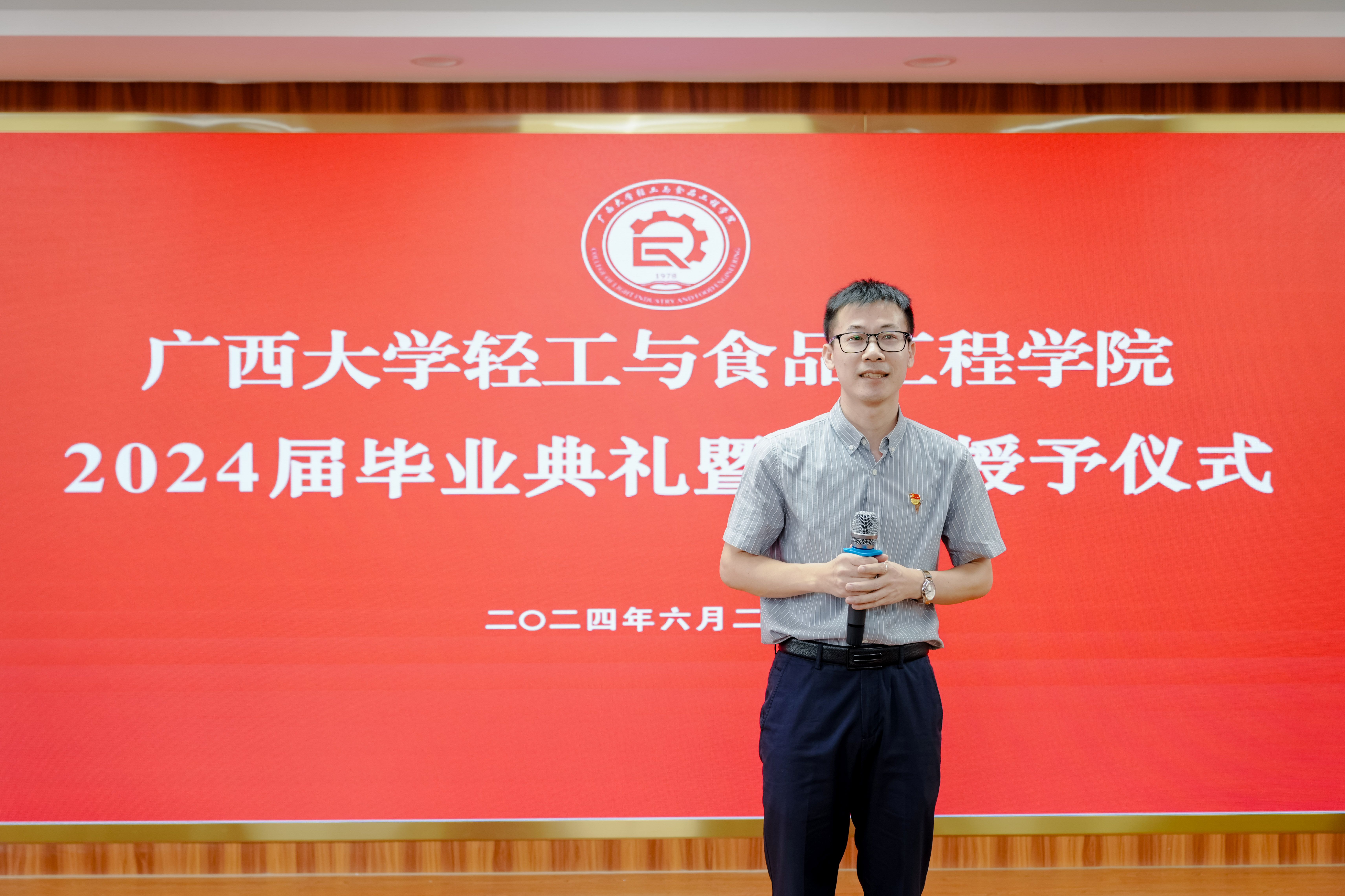 典礼伊始,制糖201班徐龙钊作为毕业生代表发言。他回忆了大学四年难忘的校园生活,号召毕业生们将青春贡献在祖国最需要的地方。他引用习近平总书记对广大青年的寄语“青春由磨砺而出彩,人生因奋斗而升华”,指出作为新时代的青年学子,有责任也有义务肩负起新时代的重任,不负韶华,不负时代、不负人民,成为新时代奋勇前进的先锋。未来将带着母校的期望,老师们的教诲,同学之间的鼓励,砥砺前行,以青春之名,赴时代之约。