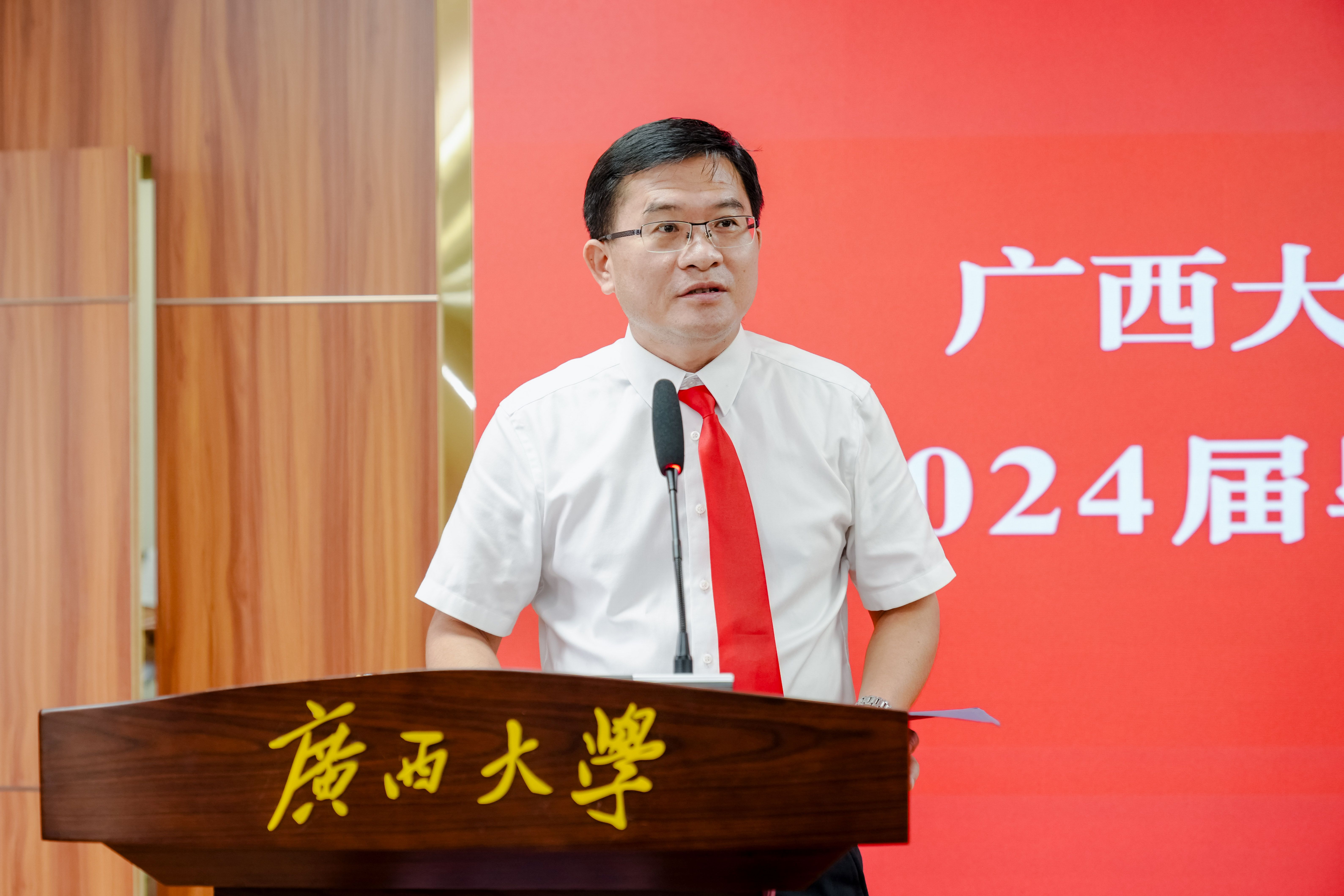 覃程荣院长在给毕业生们的临别寄语中,勉励大家要珍惜机遇,把握未来。他强调,新时代是奋斗者的时代,每一个青年都应该成为新时代的奋斗者。他希望毕业生们能够勇敢地追逐自己的梦想,不畏艰难险阻,用实际行动诠释青春的意义和价值,并对毕业生们提出了三点希望和嘱托:一是要保持勤奋好学的精神,不断学习和掌握新知识、新技能,以适应不断变化的社会需求。二是要锻造强健的体魄和坚韧的内心,时刻保持积极向上的心态,在人生旅途中,无论遭遇何种挑战与困难,都应坚守不屈不挠的毅力与勇气,勇往直前。三是要勇于探索和创新,敢于尝试新事物、新思路,不断拓展自己的视野和领域,敢于追求自己的梦想和目标,勇于承担责任和使命,为社会的发展和进步贡献自己的力量。