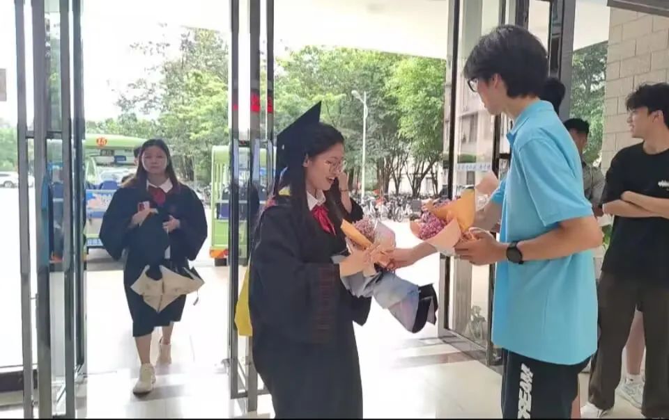 毕业生代表们将一束束鲜花送到老师们手上,感谢亲爱的老师们对他们这几年的辛勤付出,成长离不开老师们的关心关爱和指导,在前行路上,师恩永难忘!