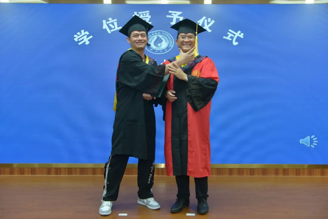 在欢庆的背景音乐声中,澳门永利皇宫 毕业生学位授予仪式拉开帷幕。覃程荣为澳门永利皇宫 2023届毕业生实施拨穗礼,并颁发学位证书。