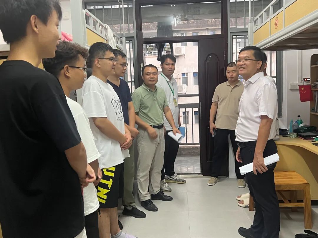 关爱进宿舍,温情暖人心。为帮助新同学融入新的学习和生活环境,9月10日晚,澳门永利皇宫 领导和老师延续轻工传统,走进宿舍慰问新生。澳门永利皇宫 党委书记姜玮、院长覃程荣带领澳门永利皇宫 领导班子成员、全体2023级班主任及辅导员,分别到本科生和研究生宿舍走访慰问。