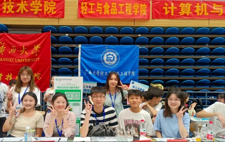 校友企业广西冰客食品有限公司慷慨捐赠果汁饮料,为新生和教职工送去清凉与关怀,彰显了校友企业的社会责任感与对母校的深厚情谊,为炎炎夏日中的迎新工作增添了一抹清凉,增强了新生的归属感和自豪感。