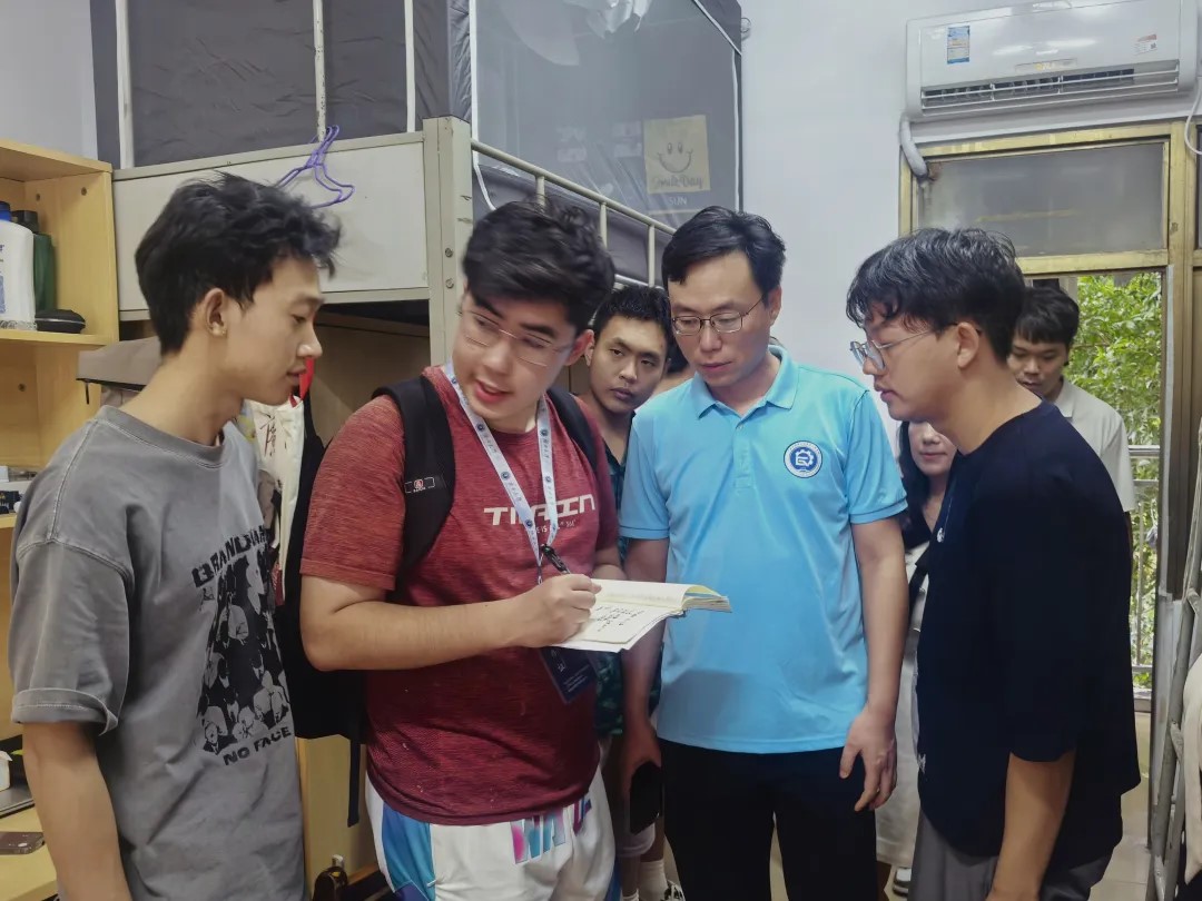 党委书记姜玮、院长覃程荣率队走访新生宿舍,与新生面对面交流,鼓励他们树立专业信心,合理规划大学生活,尽快适应新环境,开启精彩人生。